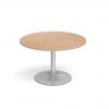 3. Circular aluminium dining tables with trumpet base leg design